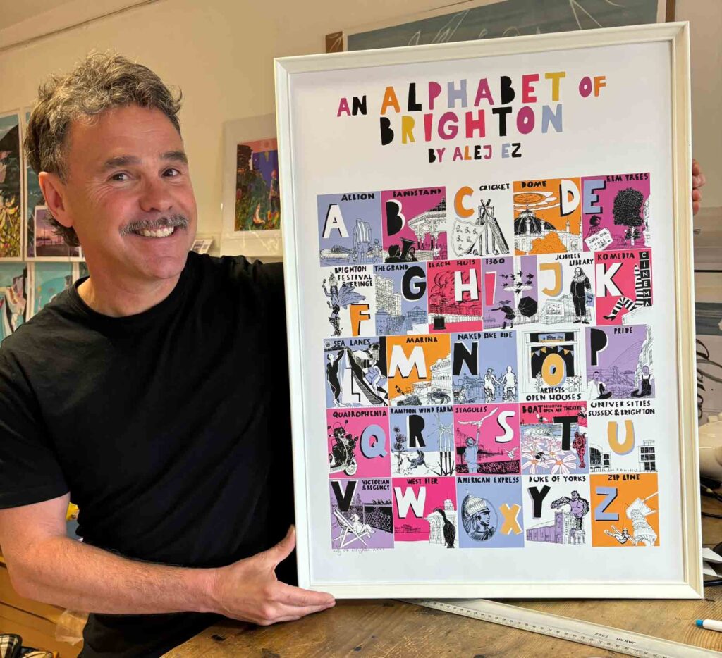 On the whole, the design has been a collective endeavour. In fact I consulted fellow artists,  friends and my partner for their particular views and ideas. Furthermore I had to balance them all and the hardest part was to decide what to leave out. While developing the Alphabet I realised that I was putting together a graphic record of our times in Brighton and Hove with connotations from the past, the present and possibly what we are leaving as our legacy for the future.