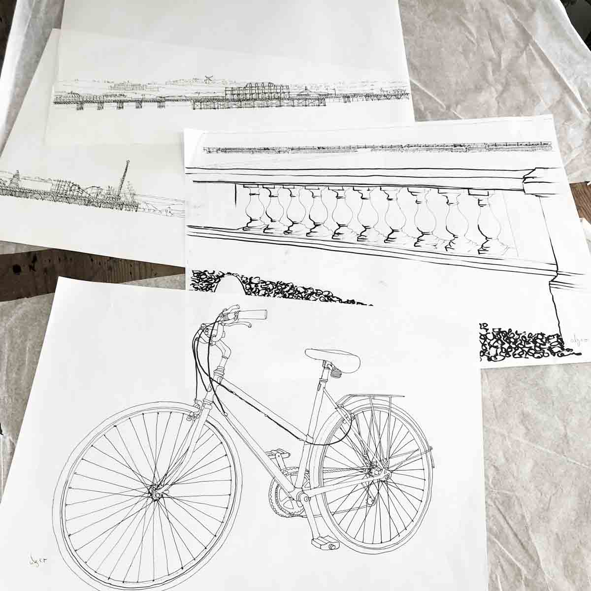I’m often looking up—through windows at night, cycling along the seafront, or walking home past Brunswick Square in Hove. Those skies, along with childhood evenings spent studying constellations with a torch and a sky map, have led to a new series of prints.