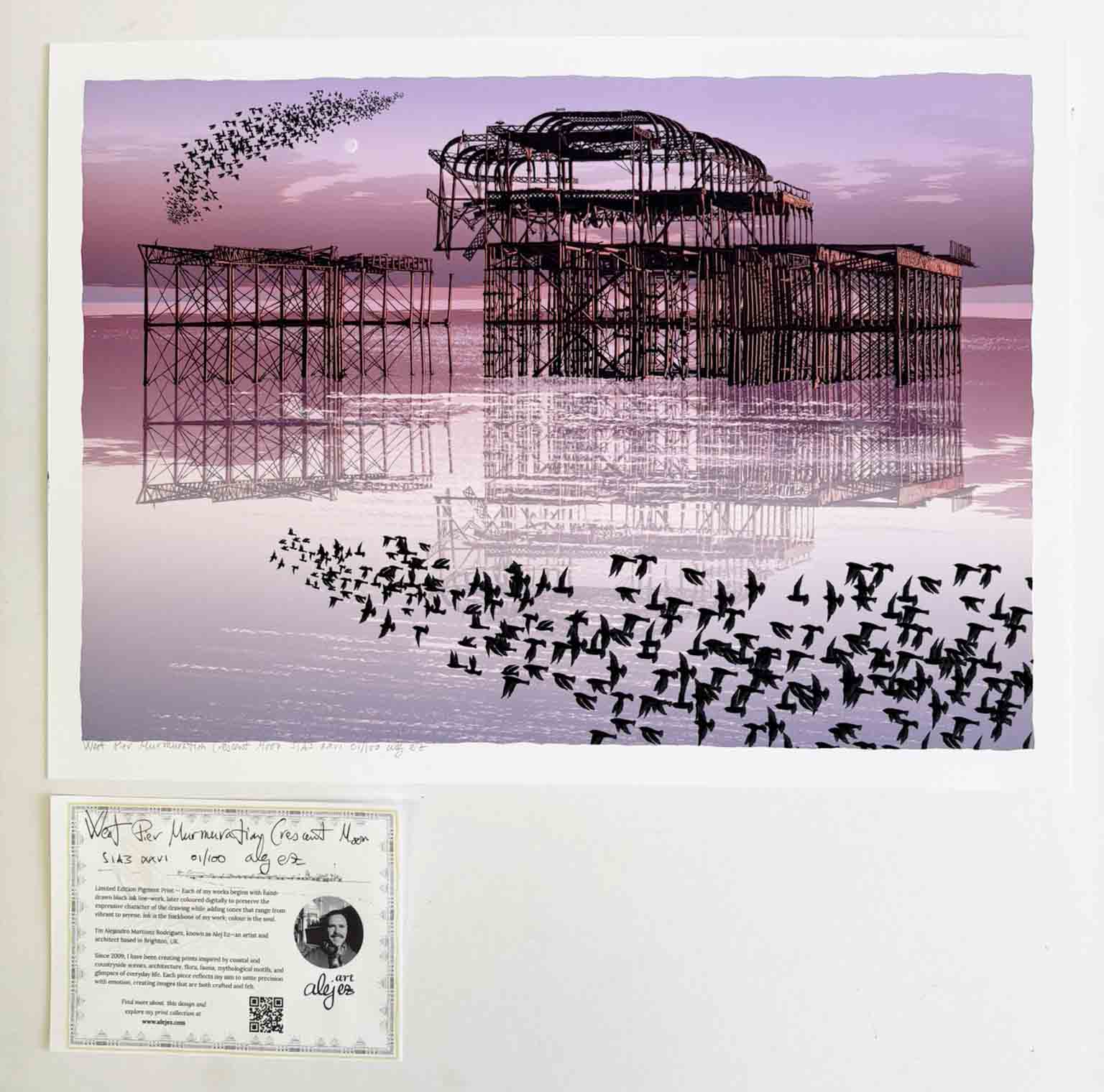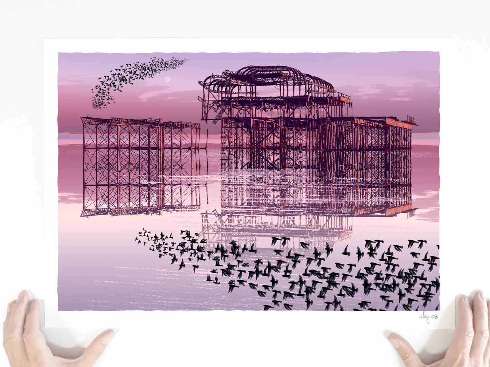 In 2019 I held an exhibition at the West Pier Centre where I showed my work. My interest in this charismatic structure is well documented in numerous prints where I have featured the remains of the West Pier.West Pier.