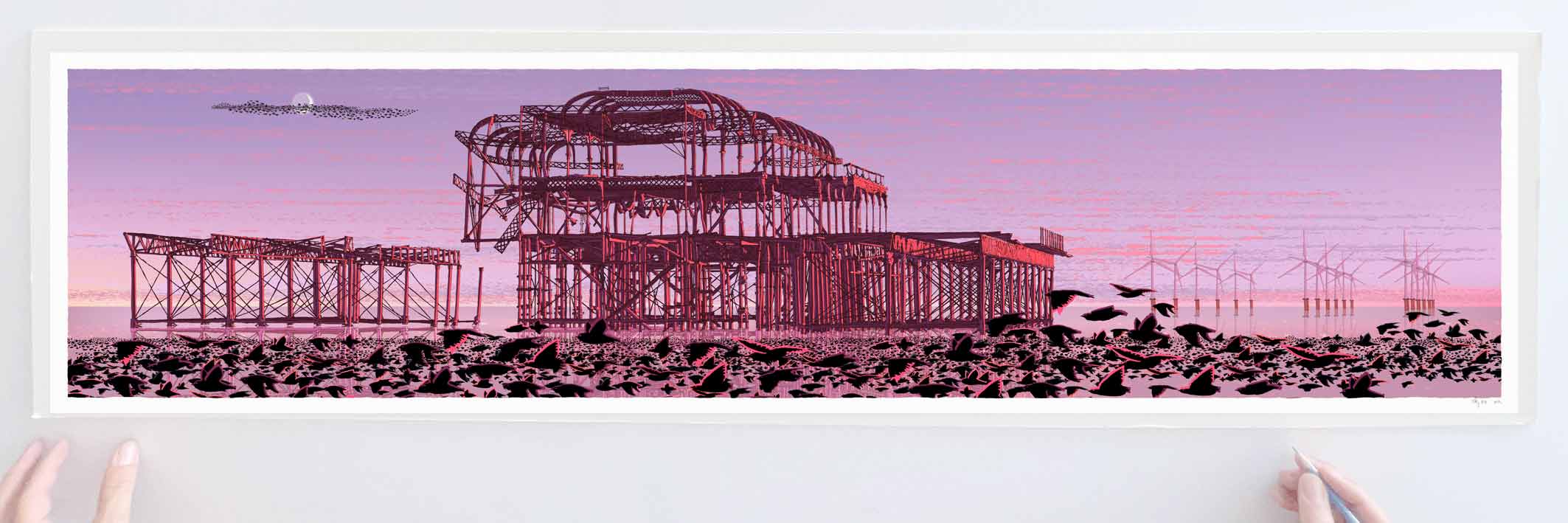 In 2019 I held an exhibition at the West Pier Centre where I showed my work. My interest in this charismatic structure is well documented in numerous prints where I have featured the remains of the West Pier.