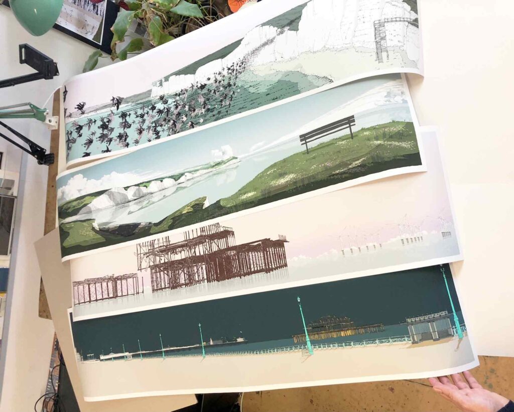 I create limited-edition prints combining traditional mark-making with contemporary printmaking. Based in Brighton, UK, my subjects include architecture, coast, countryside, and city life.