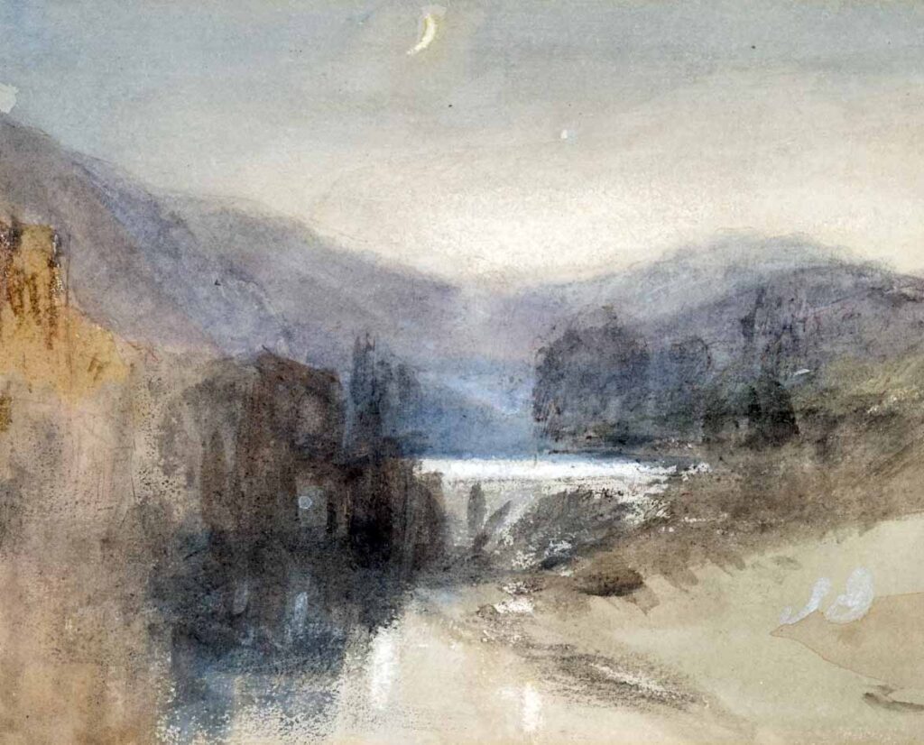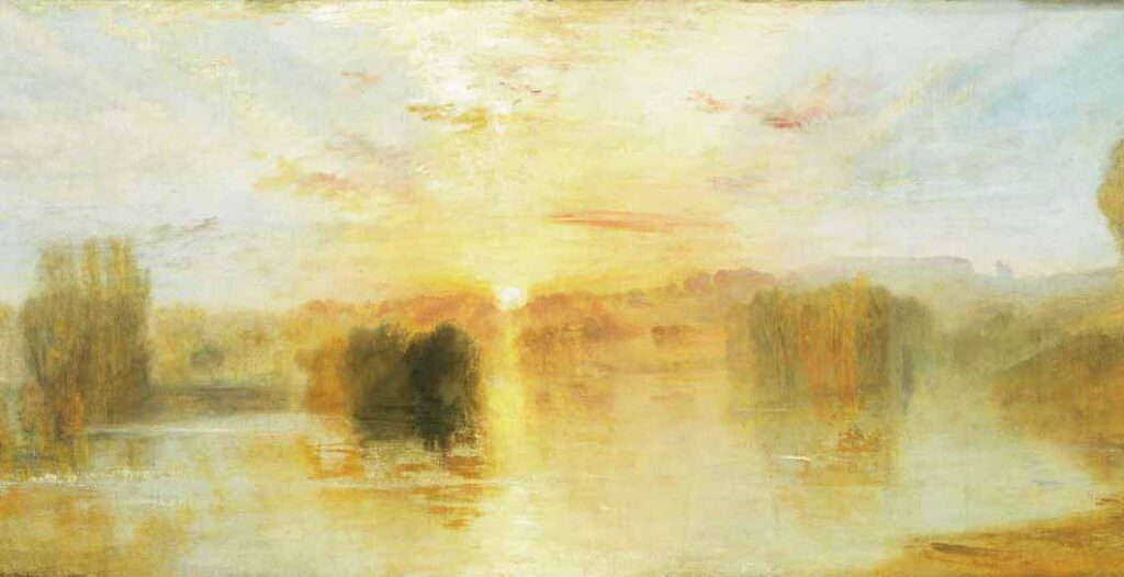 Then at Towner Eastbourne, in an exhibition originating from the Holburne Museum, I saw more of Turner’s work: A Low Sun (c. 1840) and River Scene with Crescent Moon (c. 1841). These works sit right at that edge—where form begins to give way to light.